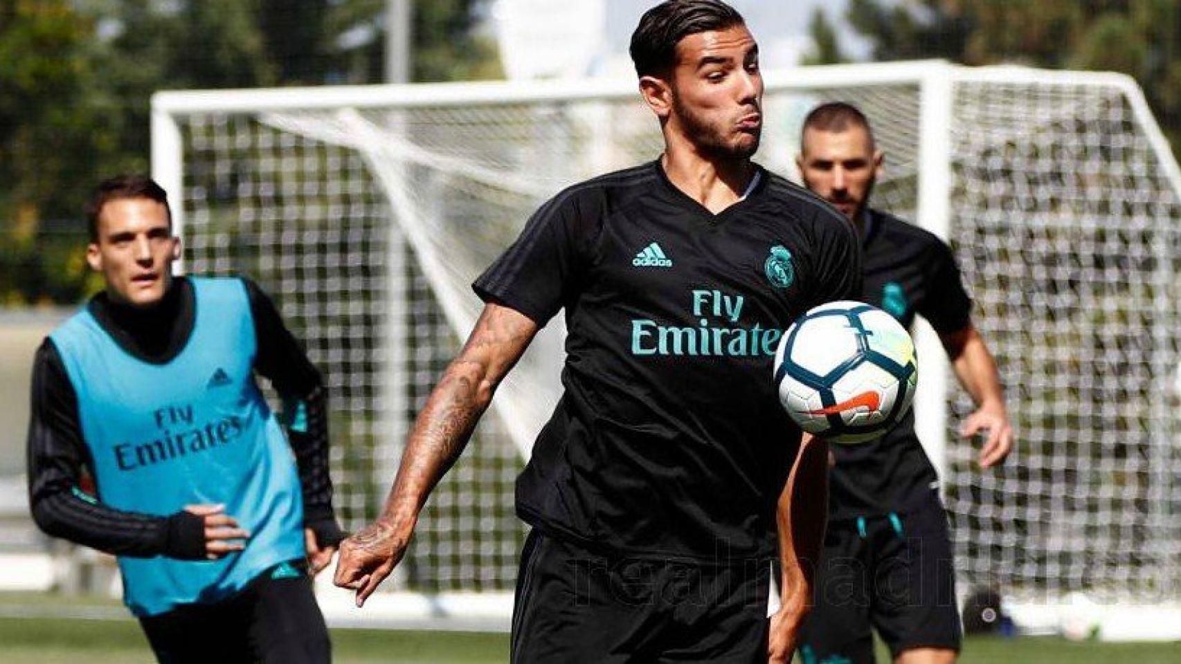 Theo Hernández en la sesión de entrenamiento