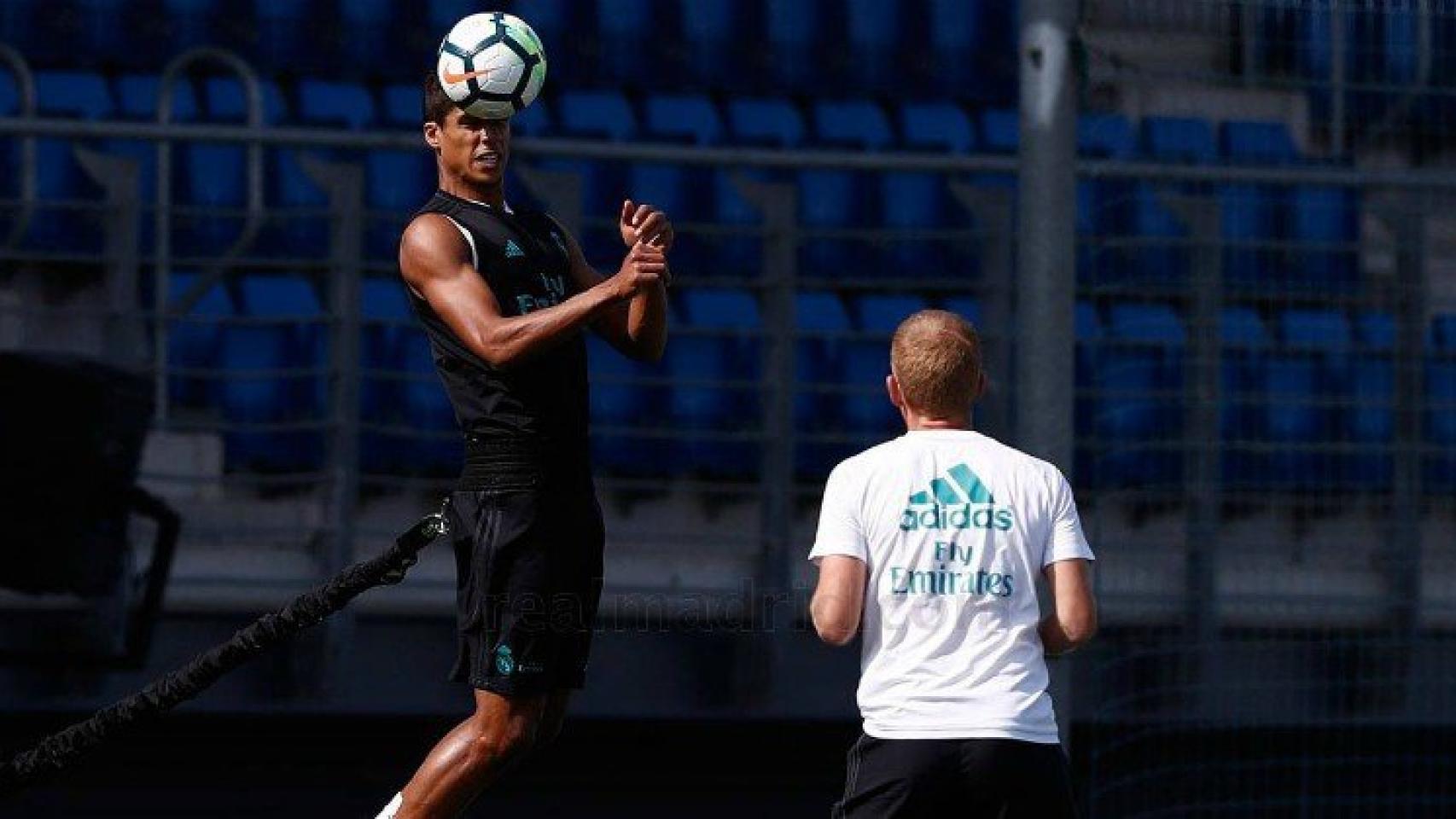 Cristiano Ronaldo y Tejero durante un entrenamiento del Real Madrid