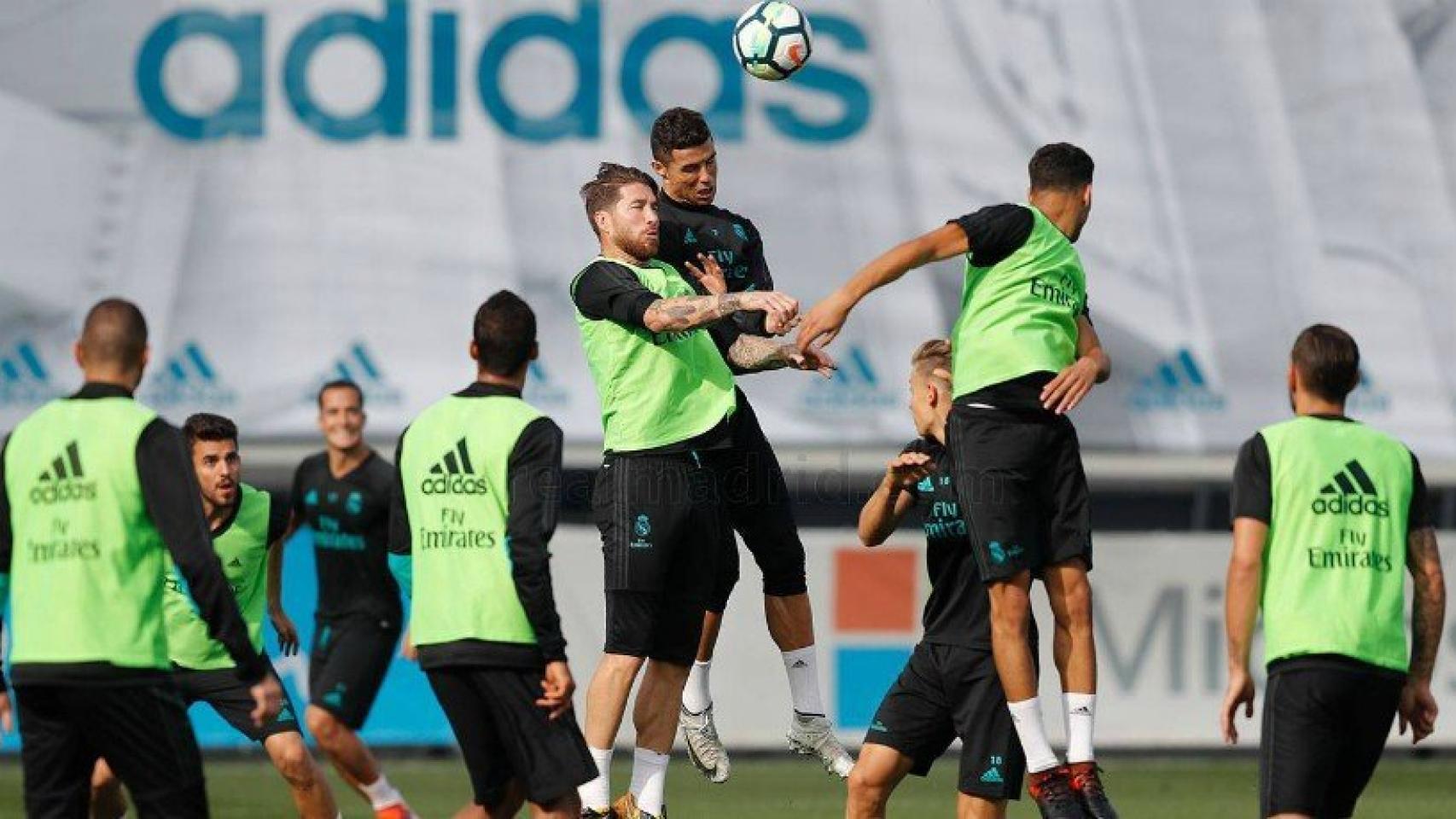 Rondo formado por Mayoral, Marcelo, Varane, Achraf y Moha