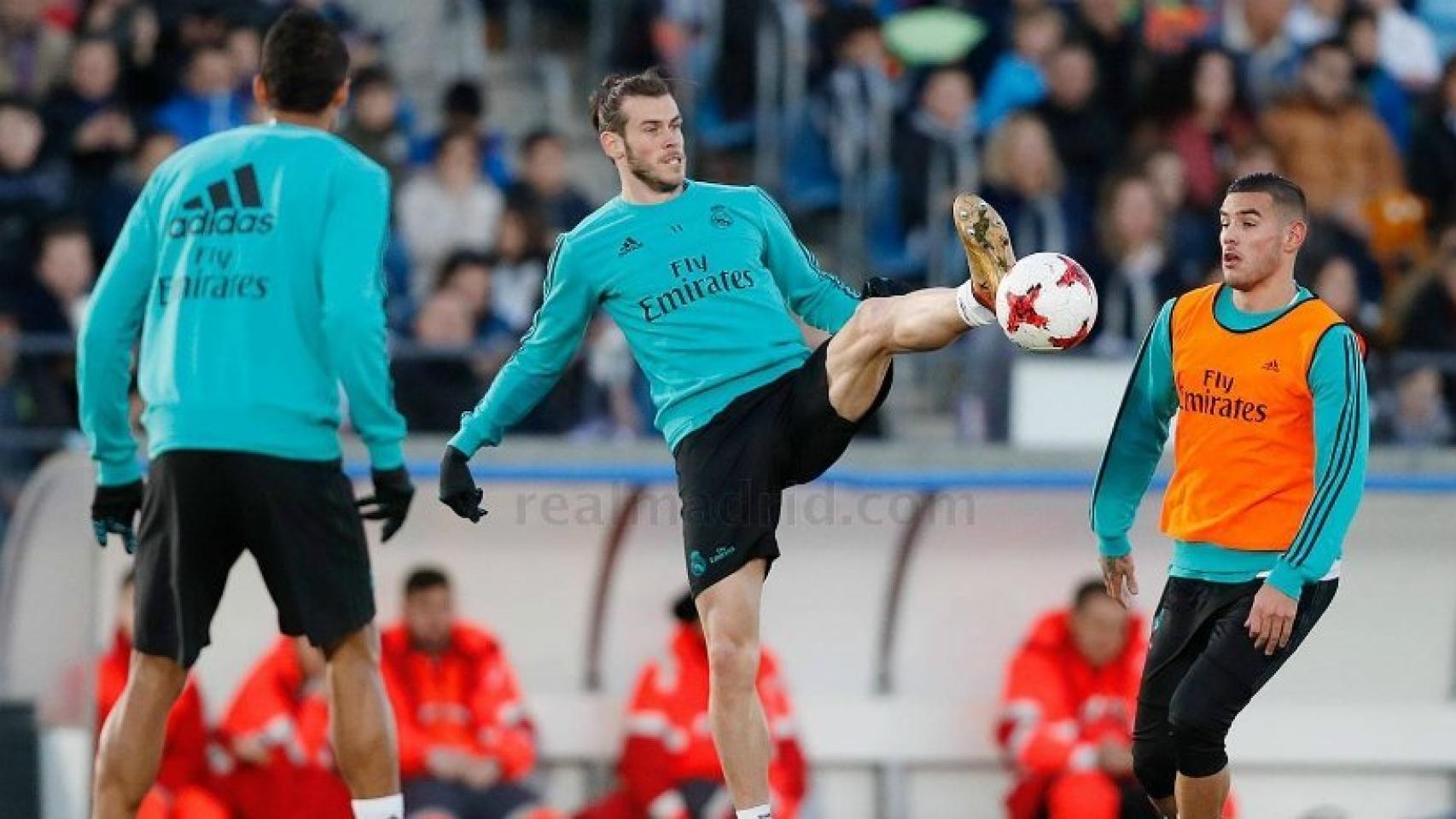 La plantilla del Madrid durante el entrenamiento a puerta abierta