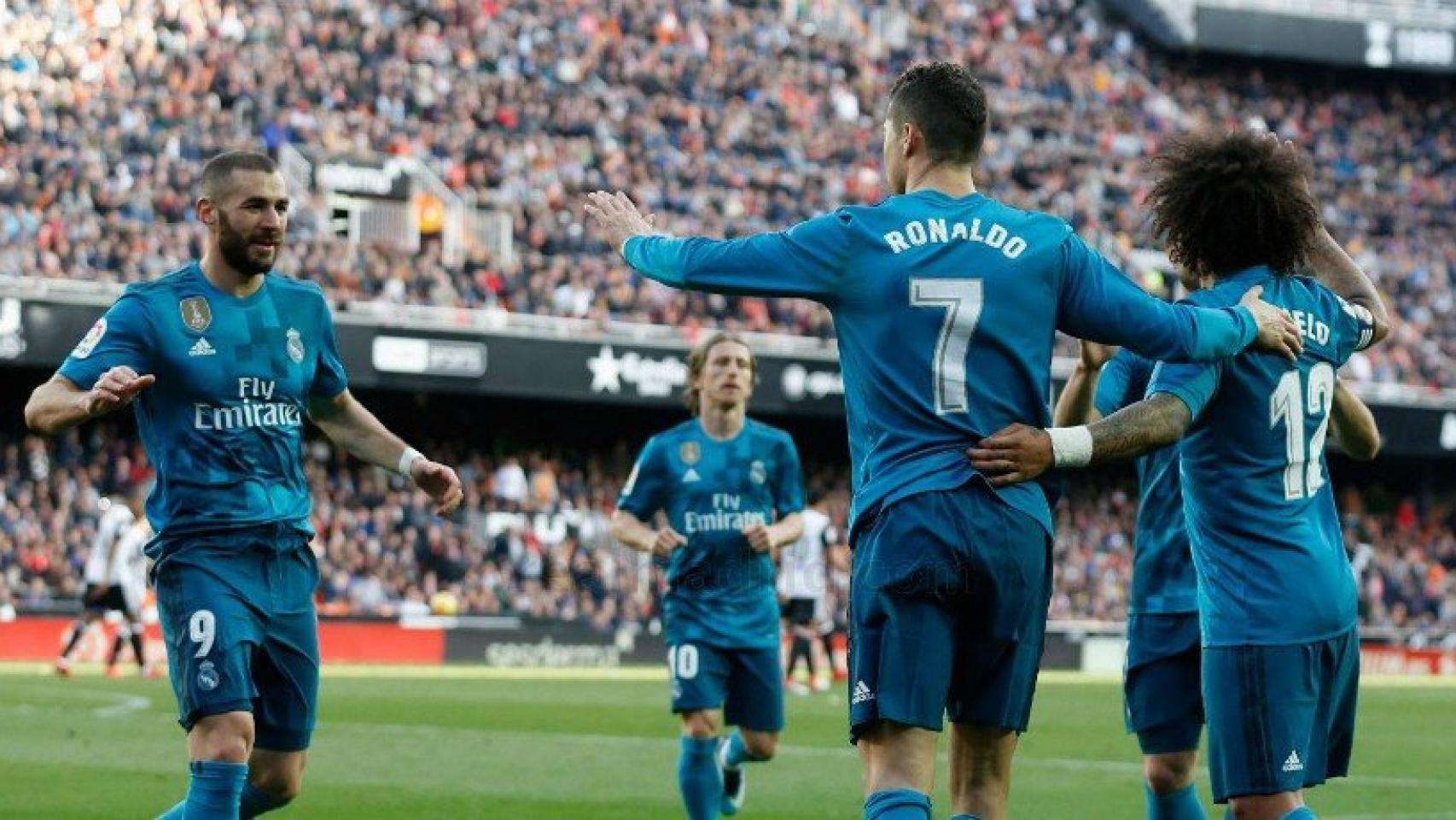 Casemiro abraza a Cristiano tras su gol al Valencia