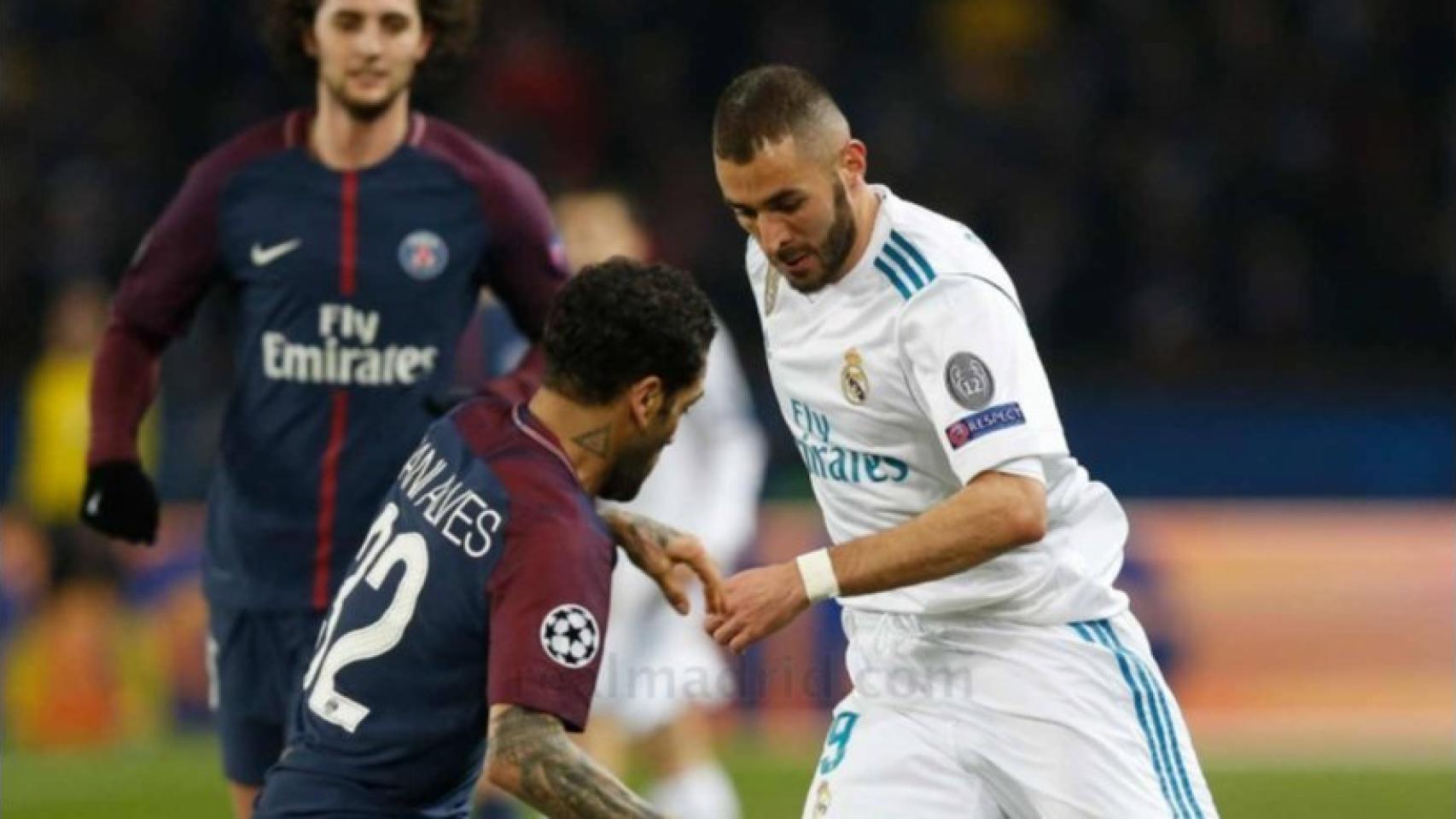 Los jugadores de Real Madrid y PSG junto a los árbitros