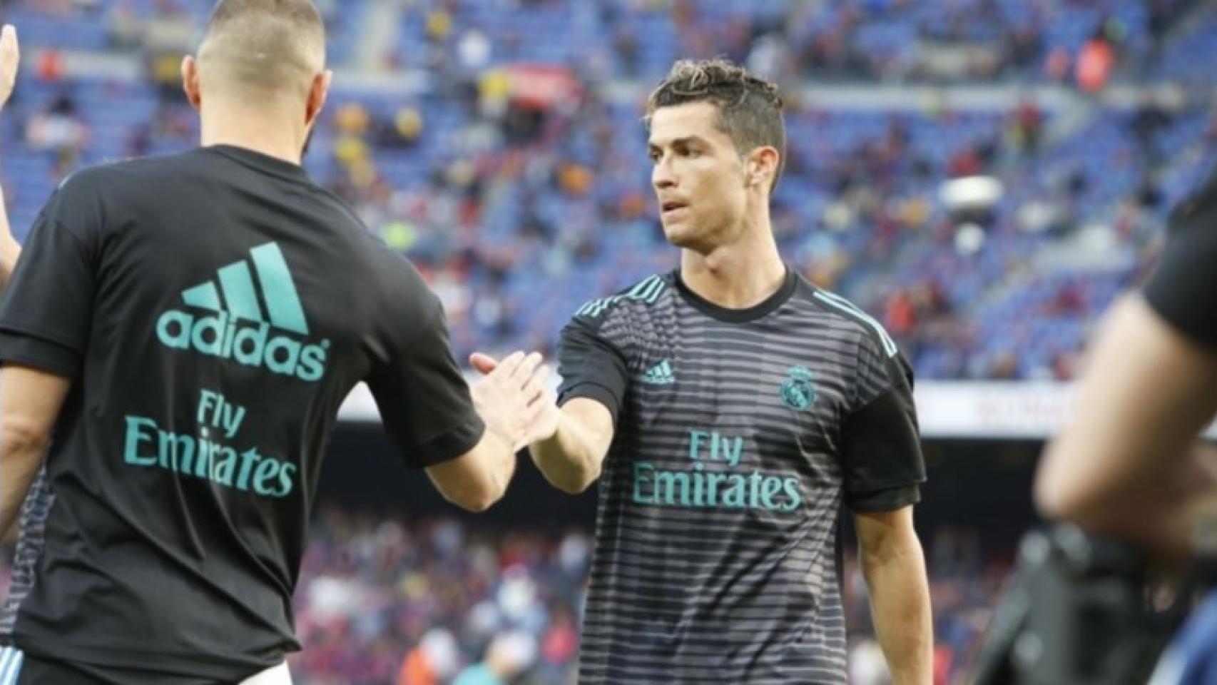 Benzema y Cristiano Ronaldo celebran un gol del portugués en el Camp Nou Foto: Manu Laya/El Bernabéu