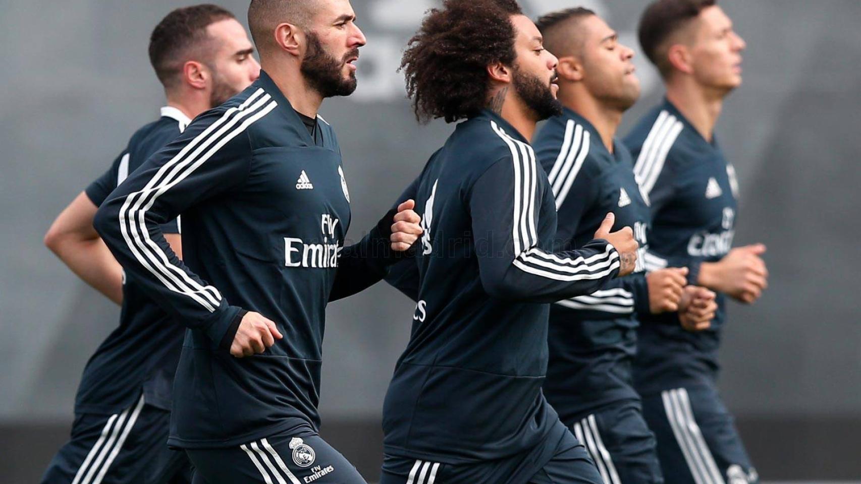 Los jugadores del Real Madrid realizando la parte física de la sesión