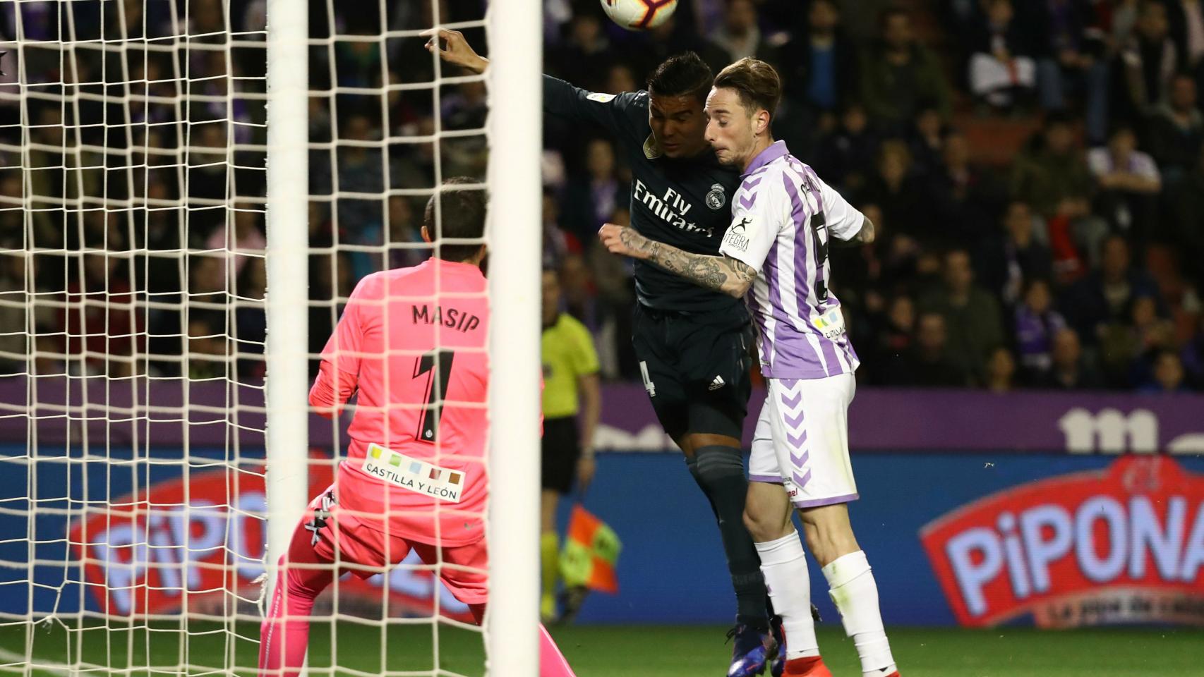 Los jugadores del Madrid tras varias ocasiones claras del Valladolid