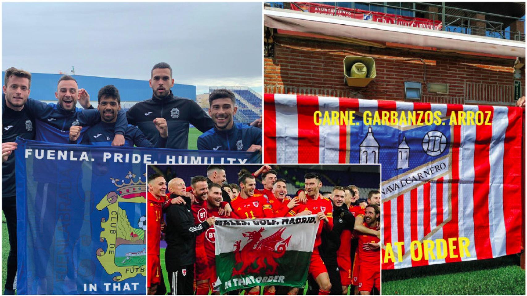 Gareth Bale posa con la bandera "Gales, golf, Madrid"