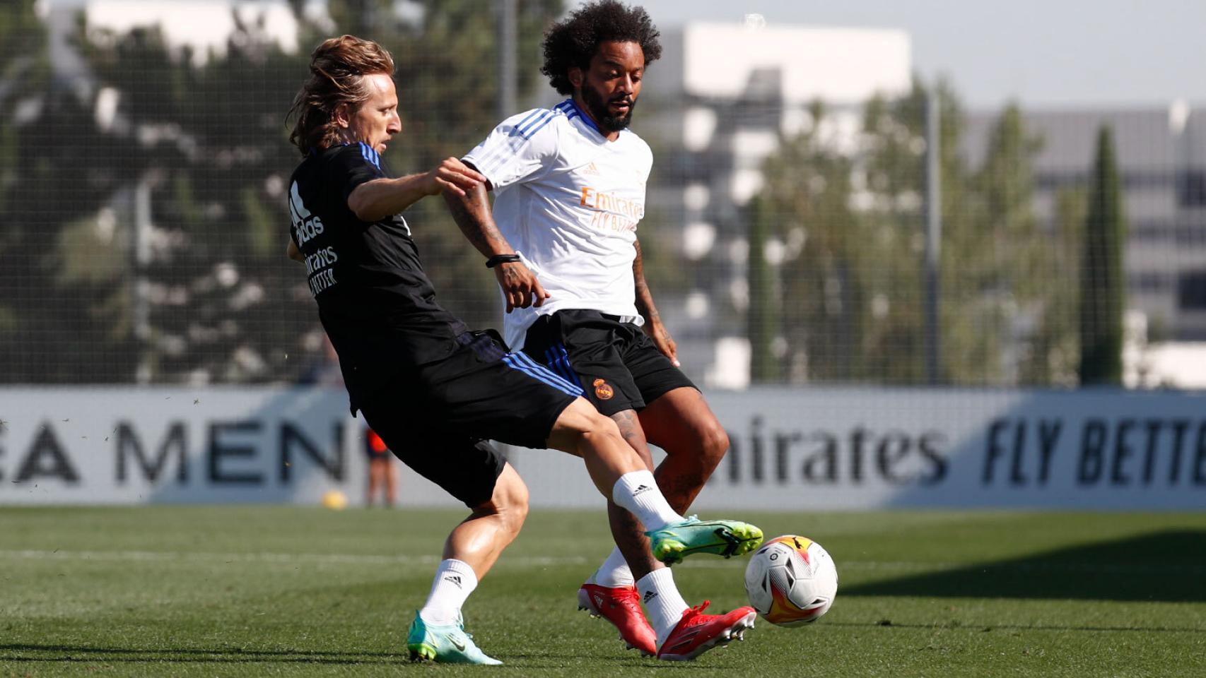 Isco Alarcón tocando el balón en el entrenamiento del Real Madrid
