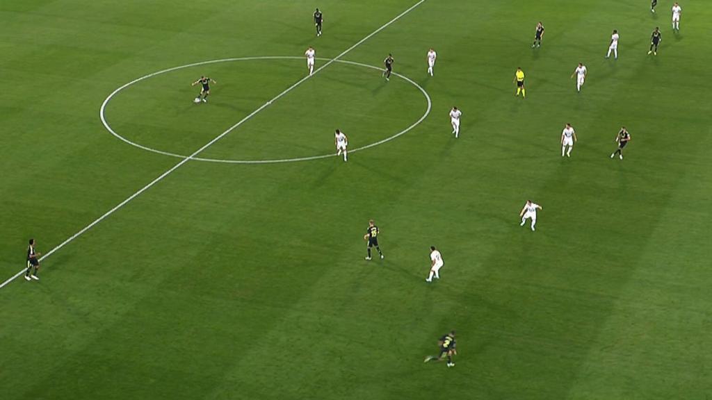 Esta vez la jugada no acaba en gol para el Real Madrid, pero sí en un nuevo fuera de juego para la estadística del equipo merengue. Karim Benzema tenía un pie adelantado en el momento del pase y antes de conectar con Rodrygo.