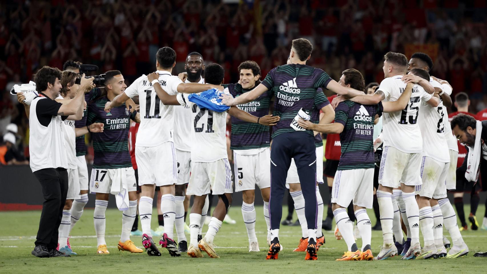 Los futbolistas del Real Madrid celebran el gol de Rodrygo nada más arrancar el partido.