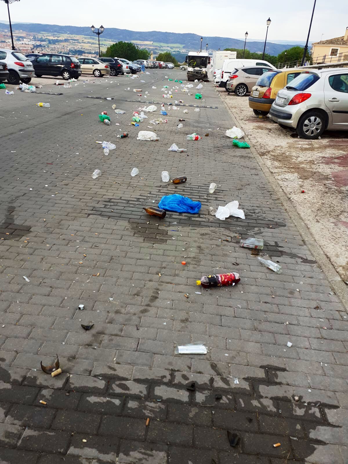 El domingo por la mañana eran visibles decenas de botellas, vasos de plástico y basura acumuladas en la zona, como ha criticado la asociación de vecinos del casco antiguo en sus redes sociales.