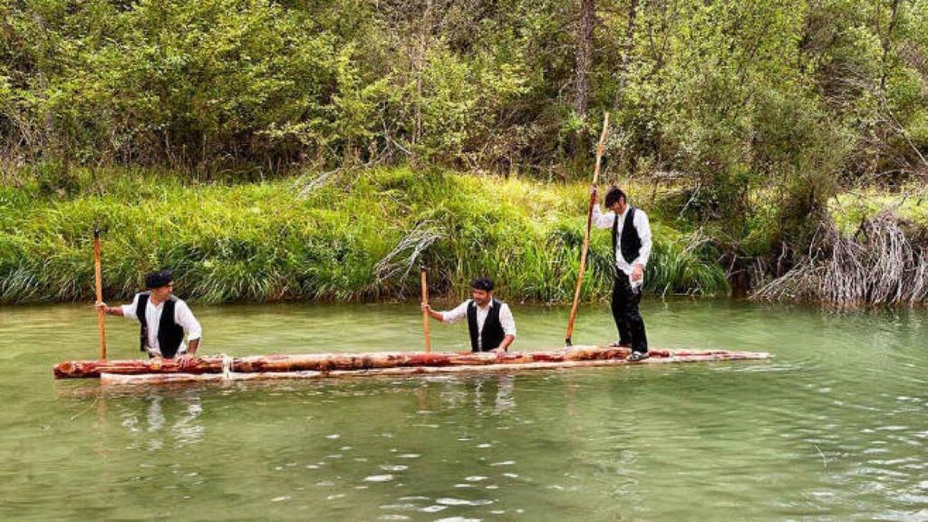 Sobre las 11 horas se prepararán los troncos y a mediodía tendrá lugar esta vistosa fiesta en la que cerca de 25 gancheros bajarán alrededor de un kilómetro y medio por el Tajo sobre ellos, como se transportaban tradicionalmente las maderadas, para acabar en El Vivero con la saca sobre las 13 horas.