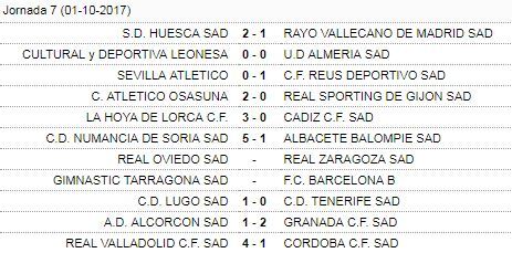 Resultados y clasificaciones de la jornada en 2ª, 2ªB, 3ª y Preferente