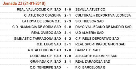 Los resultados y clasificaciones en Segunda, Segunda B, Tercera y Preferente
