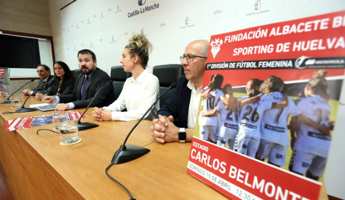 Amores ha presentado este partido junto a la directora de la Liga de Fútbol Femenino, Martina Olivas; el presidente de honor del Fundación Albacete Femenino, Pascual Costa; la capitana del equipo Mirian Costa; y el embajador del Albacete Balompié y exjugador Juanito.
