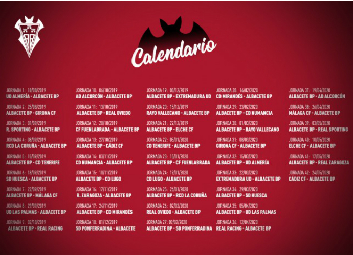 El Albacete Balompié ya conoce el calendario para la temporada 2019-2020. El equipo manchego empezará y terminará la Liga actuando como visitante en tierras andaluzas. En la primera jornada viajará a Almería y en la última visitará al Cádiz.