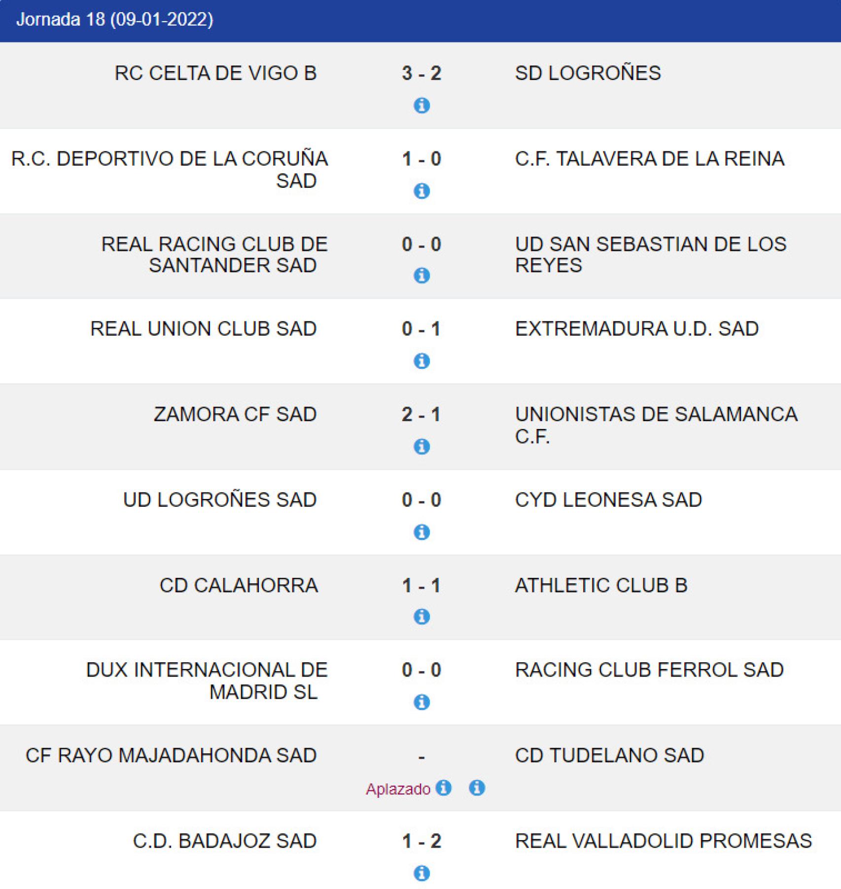 Resultados y clasificaciones en Primera, Segunda, Tercera RFEF y Preferente