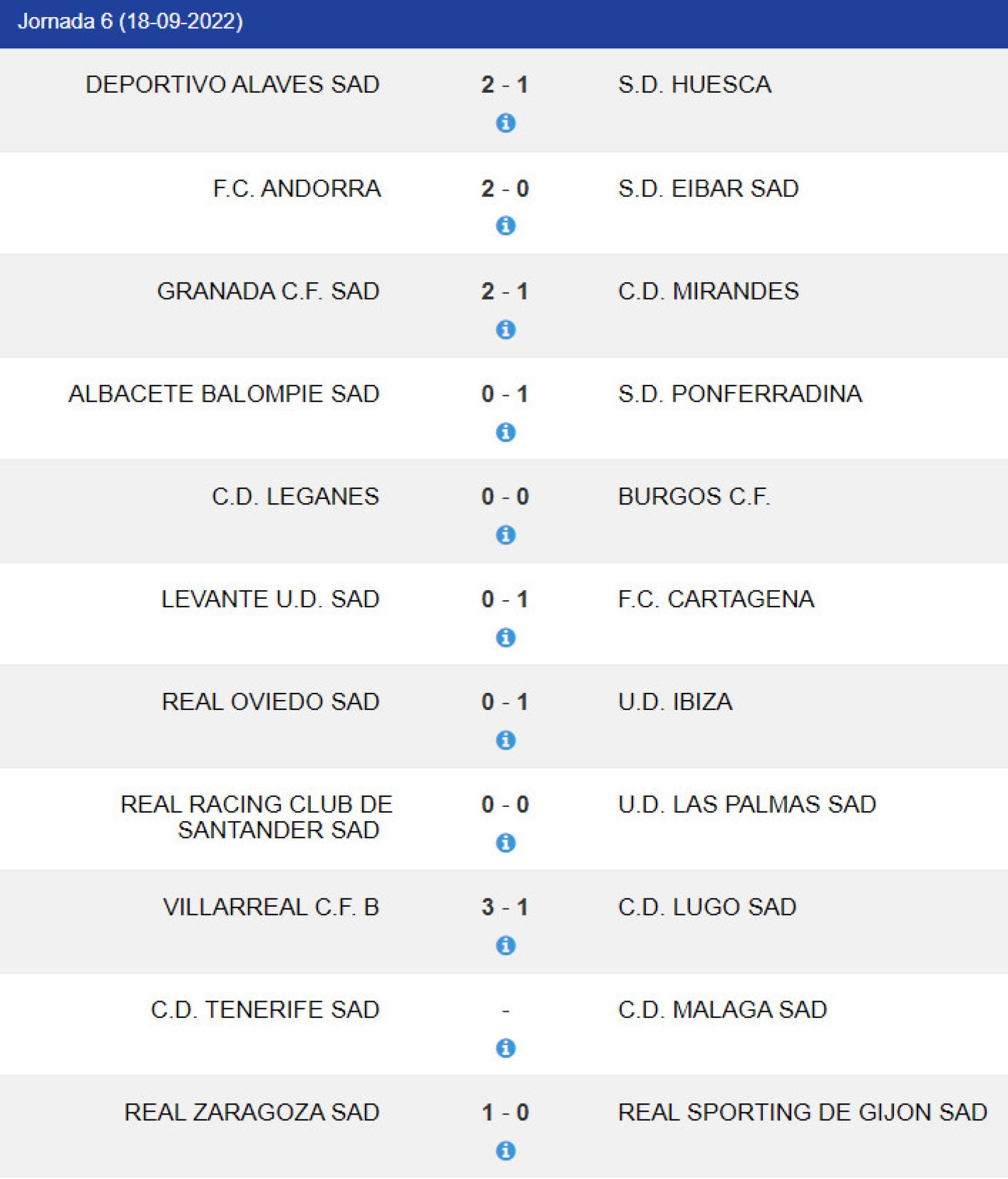 Resultados y clasificaciones en Segunda; Primera, Segunda y Tercera RFEF, y Preferente