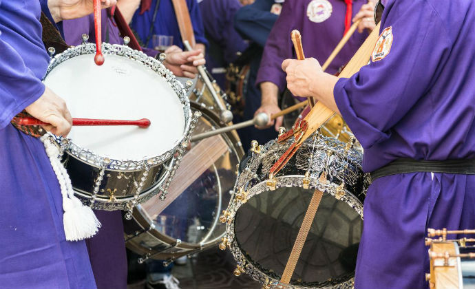 Uno de los lugares más emblemáticos de Castilla-La Mancha en Semana Santa es Hellín, ciudad por excelencia del tambor que se caracteriza, precisamente, por la integración de dicho instrumento en una festividad declarada Fiesta de Interés Turístico Internacional. Más de 20.000 personas, ataviadas con túnica negra y pañuelo rojo o negro al cuello redoblan sus tambores por las calles de la ciudad. A pesar de que la primera tamborada oficial comienza el Miércoles Santo a las 15:00 horas, es el Viernes de Dolores cuando suenan los primeros tamborileos, día en el que antiguamente se templaban dichos instrumentos.