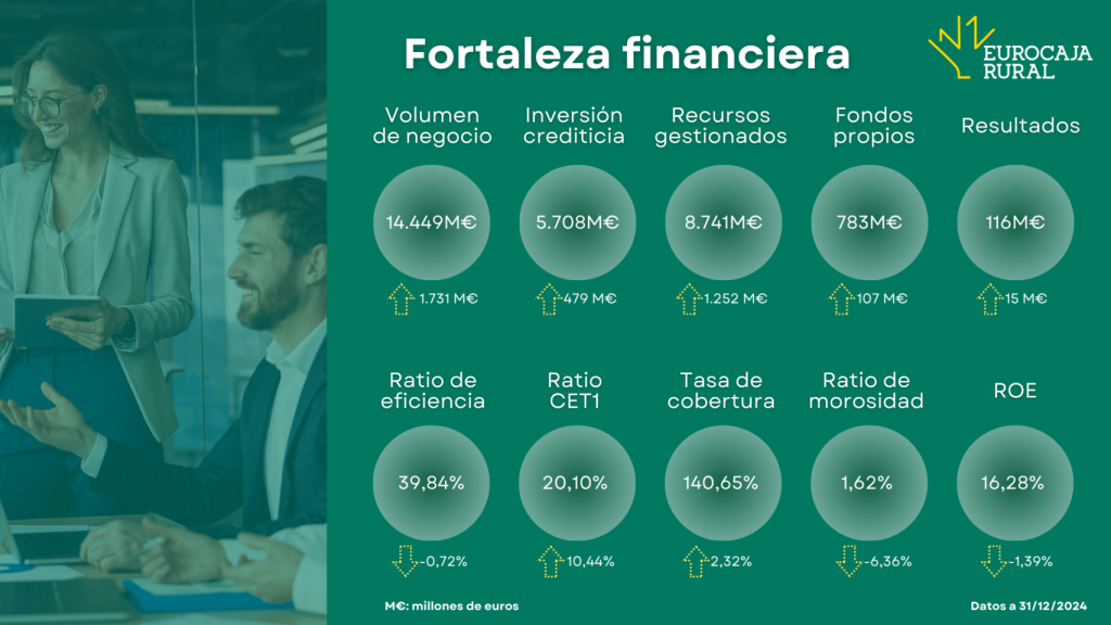 Estos datos posicionan a Eurocaja Rural como una de las entidades más solventes del sector, superando ampliamente los requisitos regulatorios establecidos por el Banco de España, fijados en el 12 %.