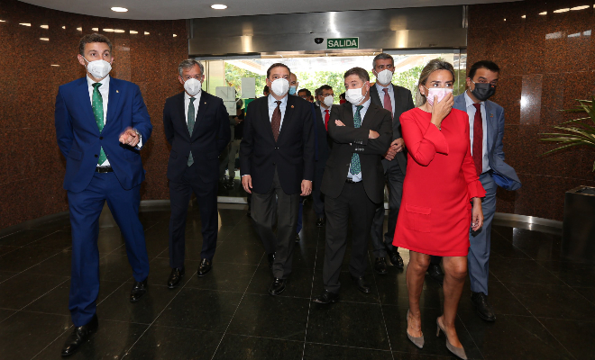 El 'Rural Summit Agro', donde prestigiosos ponentese 'influencers' del sector primario han expuesto las principales tendencias en innovación del sector agroalimentario y han ofrecido interesantes claves y consejos, ha sido apoyado por las instituciones nacionales, regionales, provinciales y locales. De hecho, durante la apertura de la jornada intervendrá el ministro de Agricultura, Pesca e Innovación, Luis Planas, que ha accedido a las instalaciones de Eurocaja Rural acompañado por el presidente de Castilla-La Mancha, Emiliano García-Page; el consejero de Agricultura castellano-manchego, Francisco Martínez Arroyo; el presidente de la Diputación de Toledo, Álvaro Gutiérrez; y la alcaldesa de la capital toledana, Milagros Tolón; entre otras autoridades, que han sido recibidas por el presidente y el director general de la entidad financiera, Javier López y Víctor Manuel Martín, respectivamente.