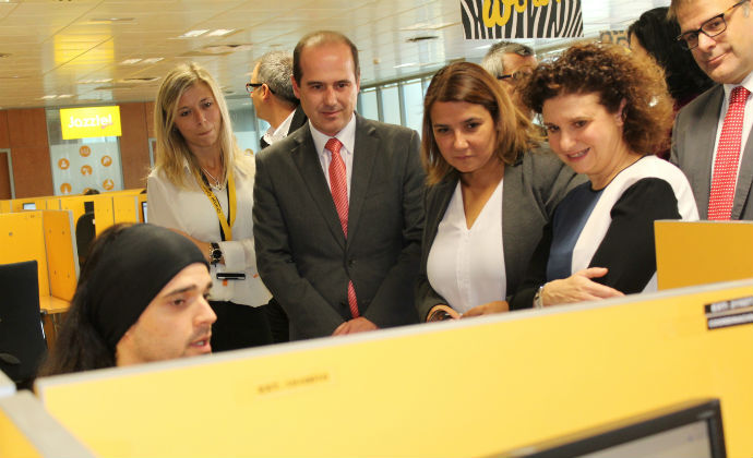 Con motivo del quinto aniversario de la creación del centro de atención al cliente de Orange en Guadalajara, la consejera de Fomento de Castilla - La Mancha, Agustina García Élez, y el director general de Telecomunicaciones y Nuevas Tecnologías, Alipio García, han visitado este miércoles sus instalaciones acompañados por Miguel Ángel Fueyo, director de Servicio al Cliente de Orange España, y por Ignacio de Orúe, director de Personas y Comunicación de la operadora.