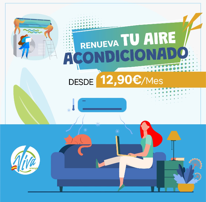 Por un bajo coste, y con la mejor calidad de equipos y servicios, Viva e Ibenergi facilitan el cambio del aire acondicionado por uno más eficiente con el que reducir el consumo de energía y, por lo tanto, reducir el coste de la factura de la luz, además de poder realizar instalaciones de autoconsumo y ahorrar desde el primer momento, gracias a las facilidades de pago.
