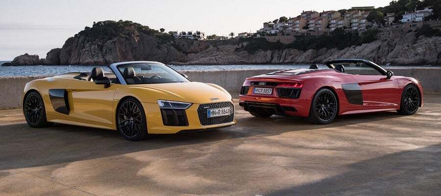 El motor central V10 con sistema de inyección dual marca la pauta en el nuevo Audi R8 Spyder. Esta mecánica atmosférica con 5,2 litros de cilindrada ofrece una respuesta espontánea y sube de revoluciones rápidamente. Su sonido, que puede ser amplificado opcionalmente con el escape deportivo, transmite pura emoción. Con una potencia de 540 CV (397 kW) a 7.800 rpm y un par de 540 Nm a 6.500 rpm, alcanza unas prestaciones a la altura de un gran deportivo: de 0 a 100 km/h en 3,6 segundos; velocidad máxima de 318 km/h. Estas cifras quieren decir que el nuevo R8 Spyder aventaja a su predecesor en 15 CV, 0,2 segundos y 7 km/h.