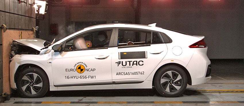 EuroNCAP es el organismo más relevante en la valoración externa de la seguridad de los vehículos dentro del sector de automoción, una pata fundamental a la hora de conseguir ser un éxito de ventas, y aunque emite valoraciones durante todo el año es a final de curso cuando otorga sus premios a los coches más seguros de cada categoría. En 2016 han evaluado 18 nuevos vehículos, y este año además ha incluido un nuevo sistema de valoración dual en el que se ponen a prueba los coches tanto con sus sistemas de seguridad de serie como con todos los extras que puede montar. Esto ha supuesto una mejor nota en muchos modelos, pero para entregar los premios finales solo se han tomado en cuenta los datos con equipamiento de serie, algo en lo que el Ioniq ha destacado de manera especial.