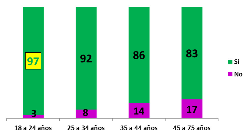 Según este estudio, en cuanto a los tipos de web consultados, destacan las redes sociales, ya que los jóvenes de 18 a 24 (20%), y los de 25 a 35 años (20%), despuntan sobre los demás a la hora de usar este instrumento para conseguir información. En cuanto a las páginas y revistas especializadas, los de 35 a 44 años (37%), y los mayores de 45 años (37%), destacan sobre los demás en este aspecto.