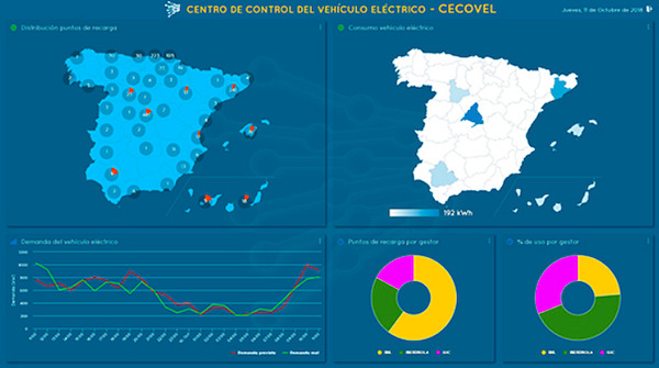 Para que la integración del vehículo eléctrico en el sistema se realice de manera segura y eficiente, Red Eléctrica cuenta con el Centro de Control del Vehículo Eléctrico (Cecovel), un proyecto pionero en España y en Europa que se enmarca dentro del Centro de Control de Energías Renovables (Cecre) y que integra 1.000 puntos de recarga georreferenciados.