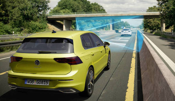 Gracias a la tecnología Car2X incorporada de serie en el nuevo Golf, el vehículo intercambia datos de otros usuarios de la carretera y de las infraestructuras con otros coches. Con ello puede recibir informaciones de otros coches que circulan por delante, lo que avisa sobre accidentes, placas de hielo, retenciones y otras informaciones importantes. Y por ello contribuye a mejorar la seguridad vial. Se pueden recibir datos de coches a una distancia de hasta 800 metros y de otras marcas siempre que empleen el mismo protocolo Car2X.