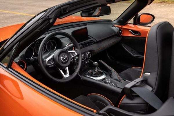 En un exclusivo color naranja mate, el Mazda Mx5 30 aniversario llega con un setup específico más deportivo que nunca y un equipamiento de lo más completo en el que no faltan los asientos Recaro con costuras a juego, la tapicería en alcántara, llantas forjadas de 17 pulgadas, frenos Brembo con pinzas de 4 pistones y suspensiones Blistein. El motor por supuesto es la última iteración de su variante de 2 litros y 184CV, mucho más lleno y satisfactorio en todo el rango de uso, y está disponible tanto con capota de lona como en la variante RF de techo duro y tipo targa.