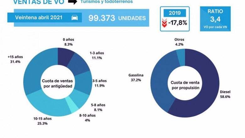 A pesar del descenso en las operaciones de usados este mes, el mercado de ocasión sigue ampliando distancia respecto al de nuevos. De esta forma, en los primeros veinte días de abril se han vendido 3,4 coches usados por cada nuevo que se ha matriculado en España, muy por encima del ratio que se registró en el mismo periodo de 2019, cuando por cada coche nuevo se vendieron 1,9 de segunda mano.