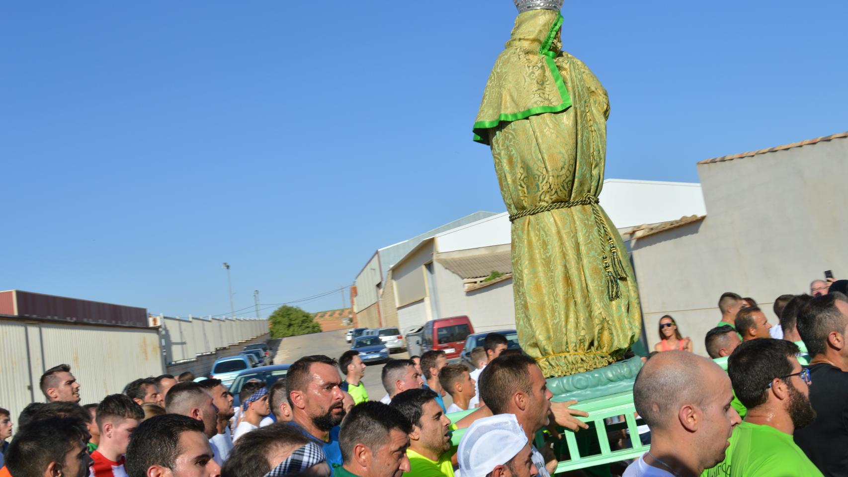 Posteriormente se emprendió la marcha en procesión hasta la iglesia parroquial de San Miguel Arcángel, donde permanecerá hasta el domingo 21 de agosto, fecha en la que volverá de nuevo a la carrera al Santuario de Manjavacas.
