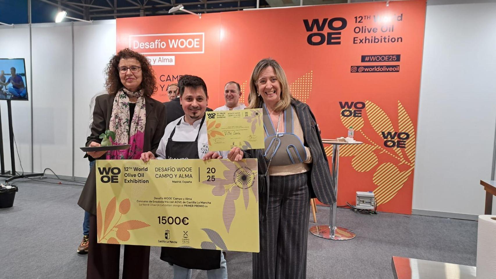 El chef Víctor Comín, del catering Elianco Gourmet (Madrid), se ha alzado hoy con el primer premio del concurso de ensaladas ‘Desafío WOOE Campo y Alma’, impulsado por la Consejería de Agricultura de la Junta de Comunidades de Castilla-La Mancha, durante el desarrollo de la 12ª edición World Olive Oil Exhibition (WOOE) en IFEMA Madrid. Un concurso en el que han participado 8 cocineros profesionales de distintos puntos de la geografía española: Rocío Maya (La Taberna de Noa), Juan Manuel Muñoz (Kiosko Brihuega), Daniel Valverde (Daviro), Alex Roberth Salinas (Quiero humo), Pablo Morales (Gozar), Juan Morales (Hotel Puerta de América), Óscar Armando de la Fuente (El Madrileño Guadarrama) y Víctor Comín (Elianco Gourmet).