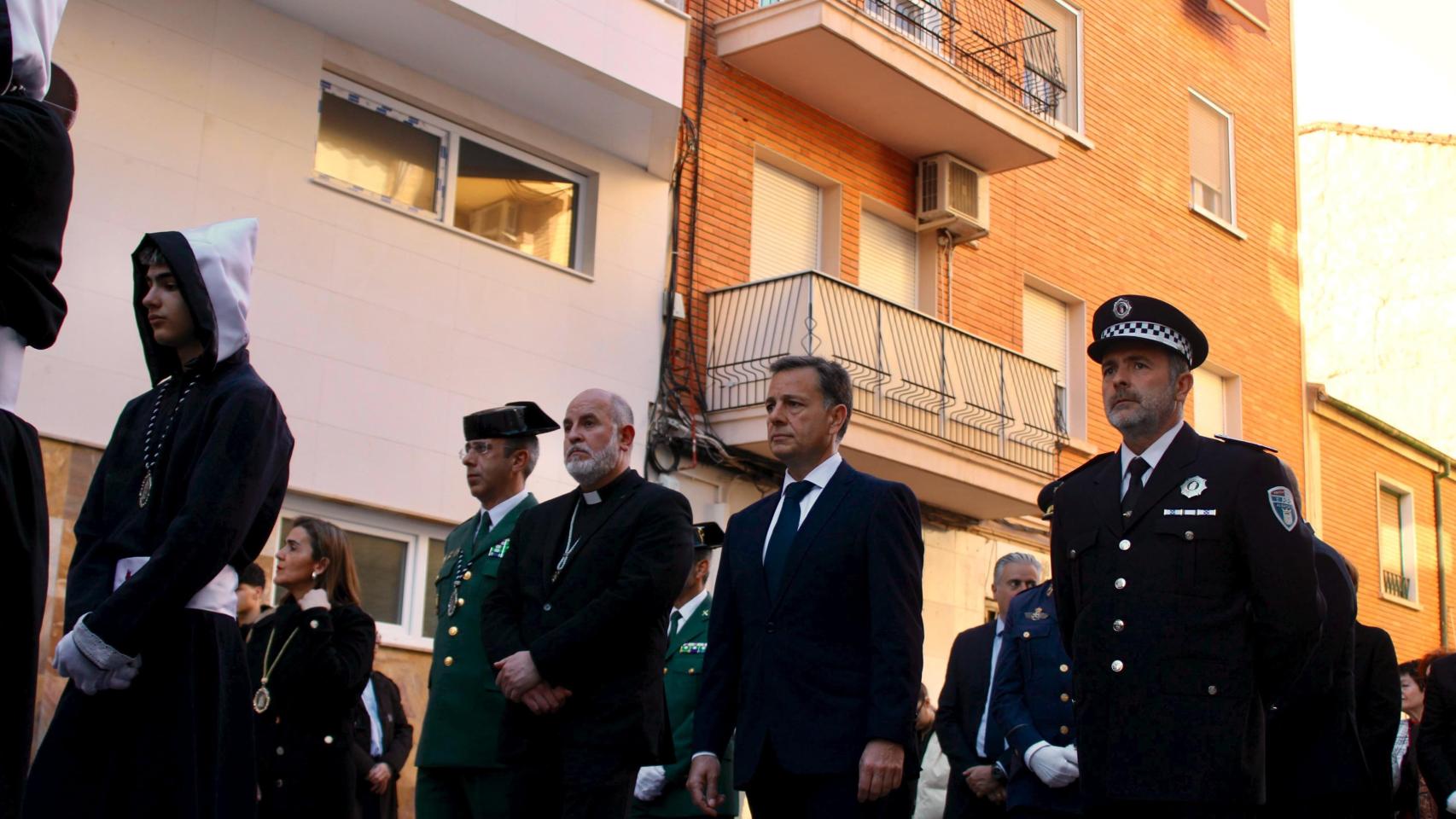 El alcalde de Albacete, Manuel Serrano, ha participado este Jueves Santo en varias actividades de la Semana Santa para compartir la emoción con el mundo cofrade, acompañado de otros miembros de la Corporación. Así, en la Parroquia de la Purísima ha asistido a la Vela por los hermanos cofrades al Santísimo Cristo del Consuelo, organizada por la Cofradía del Silencio y Santo Vía Crucis. Después ha participado en la Procesión de la Expiración, donde tiene un protagonismo destacado la Parroquia del Pilar donde se aloja la imagen de la Soledad, y también la Guardia Civil, en cuyo cuartel efectúa una parada el desfile.