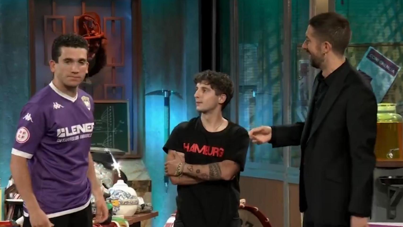 Jaime Lorente no duda en ponerse la camiseta del CD Guadalajara para su entrevista con Broncano