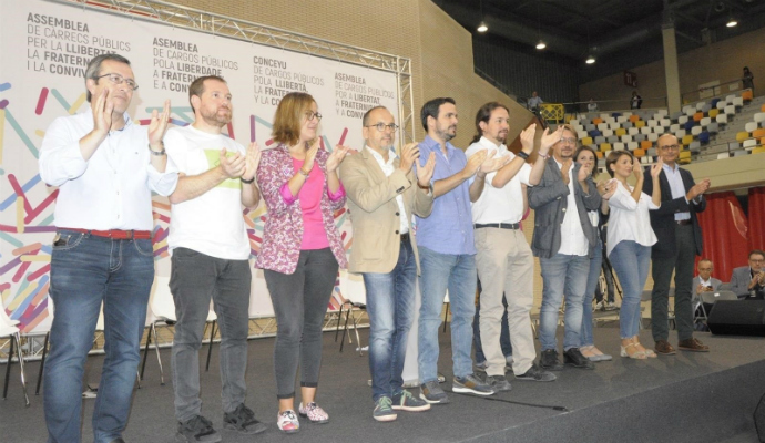 Decenas de cargos públicos de Podemos -entre ellos el vicepresidente segundo de la Junta y líder de la formación en Castilla-La Mancha José García Molina-, En Marea, PDCat, PNV, ERC y otros partidos han intervenido este domingo en un acto público en el Pabellón Siglo XXI de Zaragoza para defender la celebración del referéndum secesionista de Cataluña, convocado para el 1 de octubre, y han reivindicado los derechos civiles para exigir su realización, vinculándolo con la democracia en España.