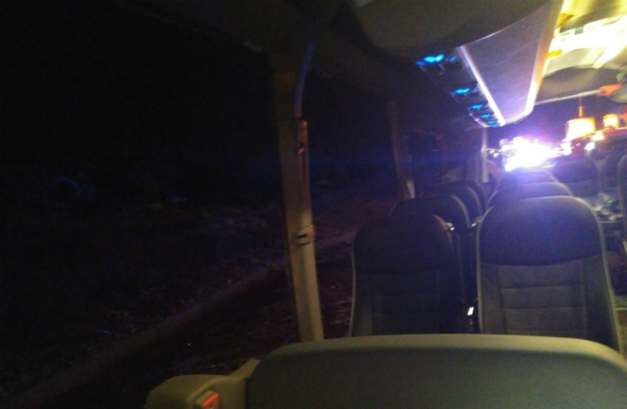 El accidente ocurrido esta madrugada se ha producido, según las primeras investigaciones de la Guardia Civil, al empotrarse el autobús contra el camión, que había parado en el andén al reventar una de sus ruedas.