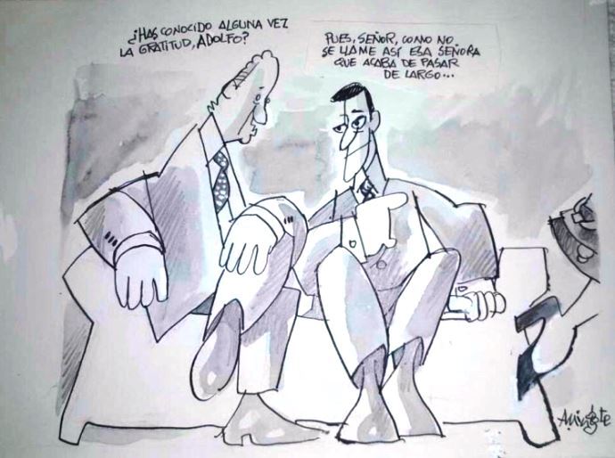 HACE unos días, hablando con su queridísima Isabel, me acordaba de nuestro inolvidable Mingote y de una magistral viñeta publicada en estas mismas páginas hace ya unos años. Como siempre, corrían días convulsos e inciertos por aquel entonces… y el genio, por enésima vez, plasmó en una sencilla ilustración el tema de aquellos días en los que mi padre acababa de cumplir 75 años y se habían publicado cosas de muy escaso valor sobre Don Juan Carlos y él. Aparecían ambos sentados en el pequeño banco de un parque por el que paseaba una ligera y vistosa señora. A su paso, Su Majestad susurraba a mi padre: «¿Has conocido alguna vez la gratitud, Adolfo?»; a lo que mi padre contestaba: «Pues, Señor, como no se llame así esa señora que acaba de pasar de largo…». Lejos de las malintencionadas interpretaciones de algunos, disfruté mucho con Mingote charlando de aquel asunto y lo esquiva que suele ser tal señora, como bien sabían ambos personajes…