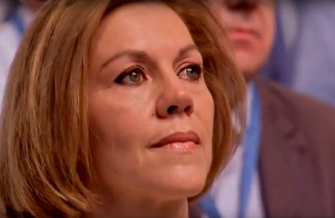 En su intervención durante el Congreso Extraordinario del PP se le ha quebrado la voz en un par de ocasiones. La hasta ahora 'número dos' del PP, que no logró pasar a la segunda ronda de las primarias, ha defendido la gestión de Mariano Rajoy, al que ha dedicado elogios, y también ha pedido a Soraya Sáenz de Santamaría y Pablo Casado, los dos candidatos a sucederle en la Presidencia, que construyan un "relato de ilusión, decencia y modernidad que sea atractivo para la sociedad española".