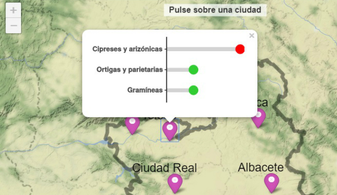 Castilla-La Mancha cuenta con un espacio web dedicado a la información de los niveles de polen y esporas en la atmósfera de las cinco capitales de provincia. Se trata de una información básica y muy demandada por la población que sufre las molestias provocadas por la alergia a determinados tipos de polen.