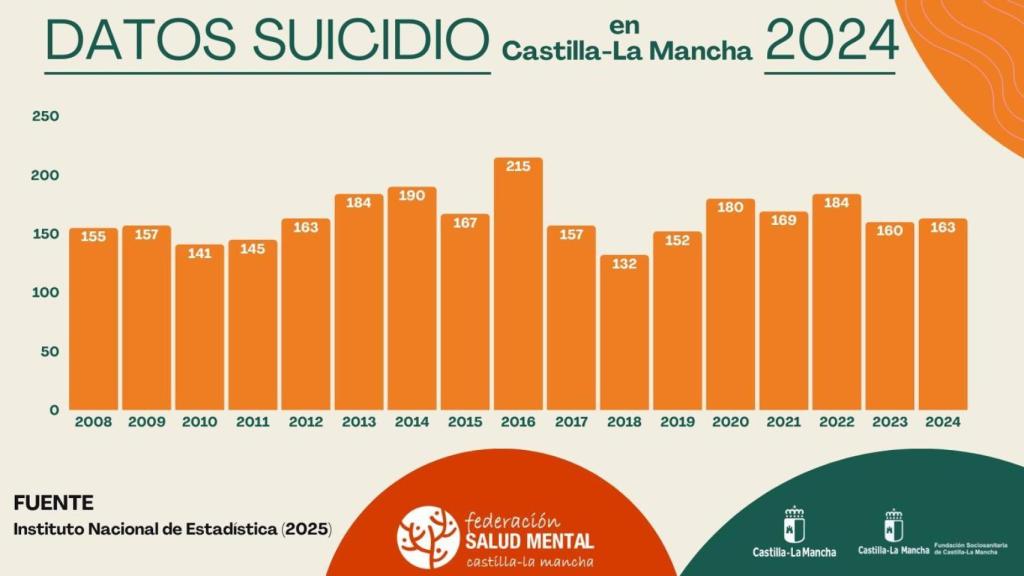 Los datos han sido difundidos por la Federación Salud Mental Castilla-La Mancha a partir de las estadísticas oficiales publicadas por el Instituto Nacional de Estadística (INE), que sitúan este fenómeno como uno de los principales problemas de salud pública en la región.