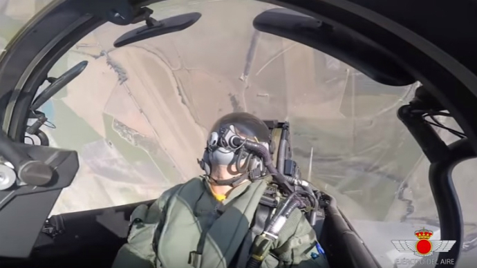 El Ejército del Aire, dependiente del Ministerio de Defensa que comanda la castellano-manchega María Dolores de Cospedal, ha publicado en su canal oficial de YouTube un espectacular vídeo en el que se ve cómo entrena uno de los pilotos de las Fuerzas Armadas.