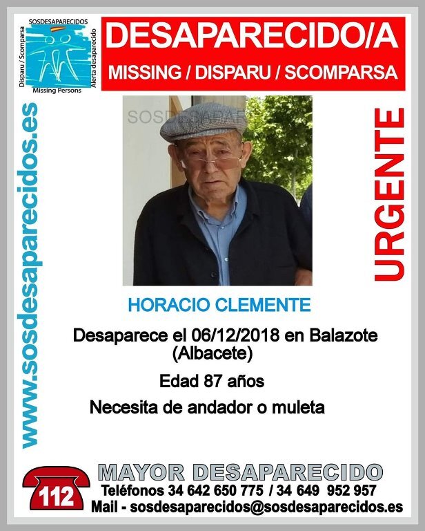 Desaparecido un anciano de 87 años de una residencia de ancianos de Balazote (Albacete)