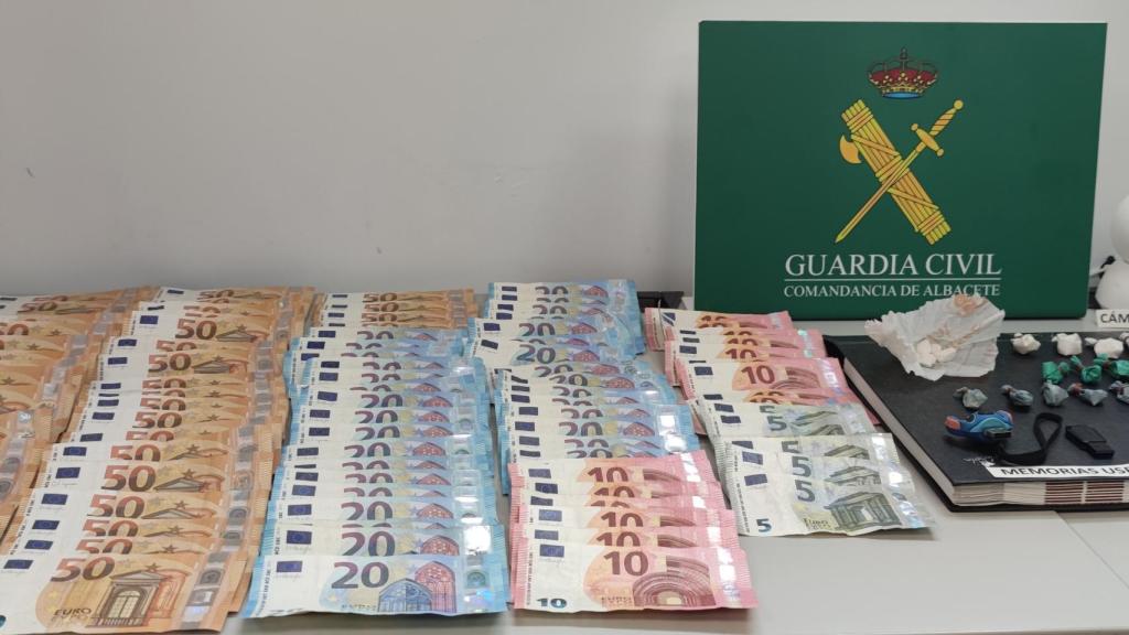 Durante la explotación, se practicaron dos registros simultáneos en Villamalea, donde la Guardia Civil intervino 25,3 gramos de cocaína de gran pureza, 3.125 euros en efectivo, un turismo, dos teléfonos móviles y diversos útiles empleados para la confeccion de las dosis.