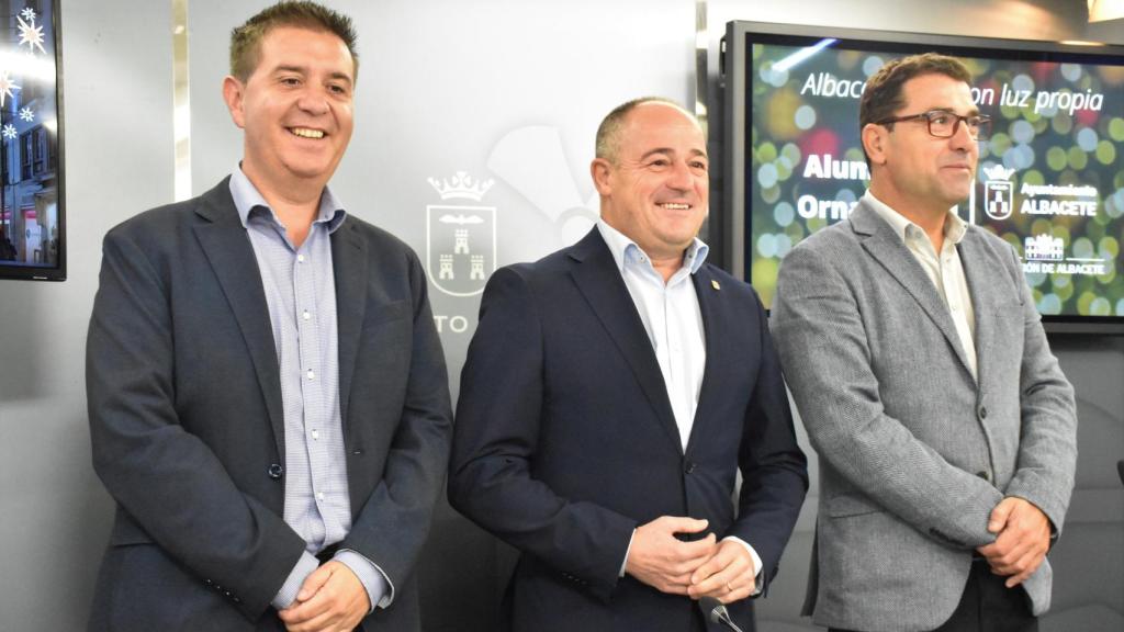 El alcalde de la ciudad, Emilio Sáez, y el presidente de la Diputación, Santiago Cabañero, han presentado este viernes el alumbrado, para el que la institución provincial aportará 60.000 a los 209.000 euros que gastará el Consistorio, presupuesto al que hay que sumar los 30.000 euros que invertirá El Corte Inglés para los arcos de la Avenida de España.