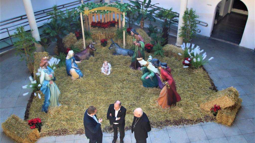 El nacimiento ha sido visitado este viernes por el obispo de Albacete, Ángel Fernández; el alcalde de la ciudad, Emilio Sáez, y el vicealcalde y concejal de Cultura, Vicente Casañ, que han aprovechado para felicitar las fiestas y expresar sus mejores deseos de cara al año próximo.