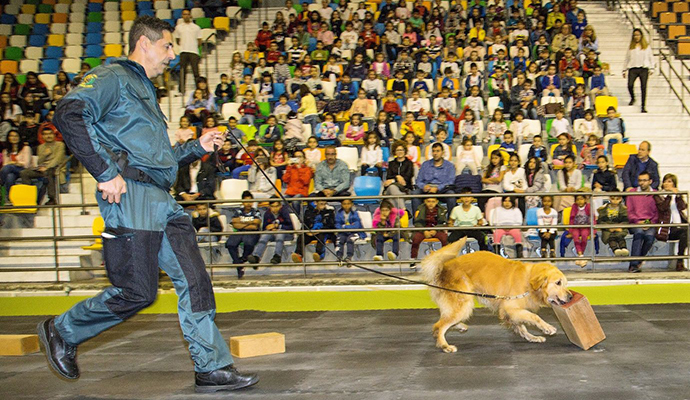 Por otro lado, niños y adultos han disfrutado de la demostración de la Unidad Canina de Castilla-La Mancha para la detección de venenos en el medio natural. La perrita Lori y otros ejemplares caninos han cautivado al público con diferentes ejercicios para detectar sustancias químicas y con simpáticos guiños a los espectadores como saludar, hacerse el muerto o contar. El responsable de la Unidad Canina ha explicado que los perros con los que trabajan detectan una docena de productos químicos.