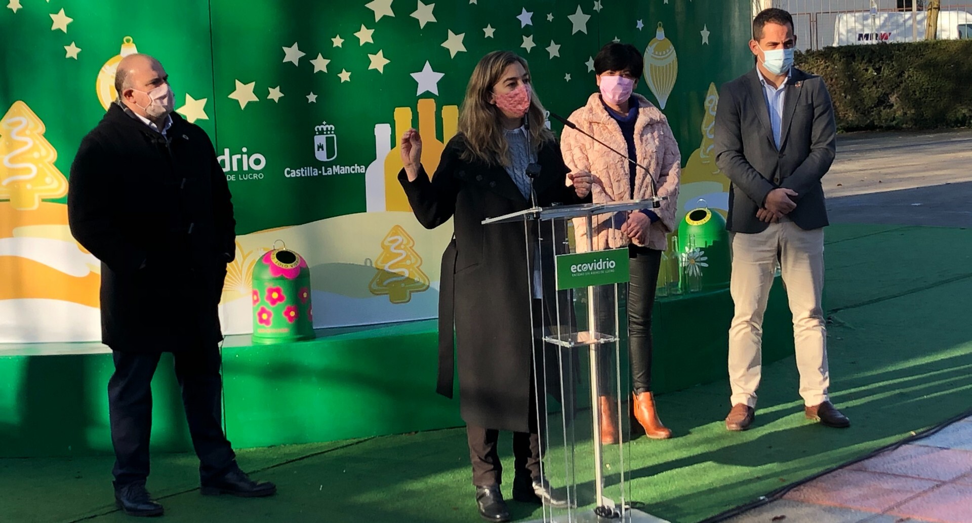 La presentación del contenedor gigante ha contado con la presencia de Fausto Marín, delegado provincial de Desarrollo Sostenible de la Junta de Castilla-La Mancha; Mariana Boadella, concejala de Sostenibilidad y Agenda 2030 en el Ayuntamiento de Ciudad Real; María Fresneda, presidenta del Consorcio RSU de Ciudad Real y Ricardo Sevilla, gerente de zona de Ecovidrio.